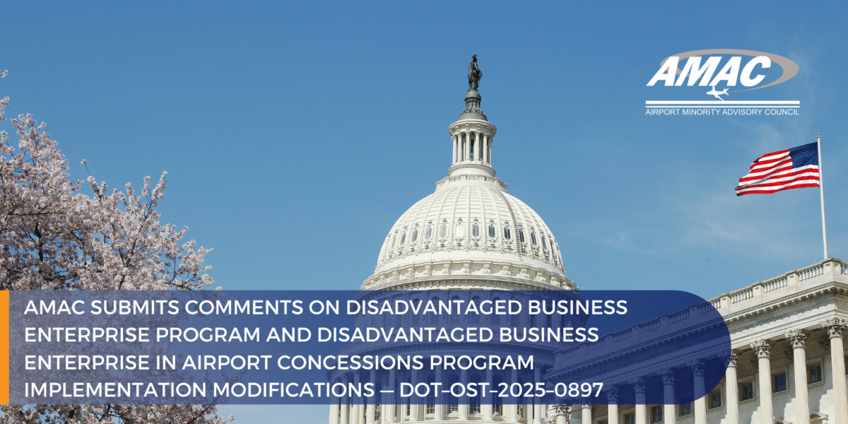 On November 3, 2025, AMAC submitted comments on the Disadvantaged Business Enterprise Program and Disadvantaged Business Enterprise in Airport Concessions Program Implementation Modifications — DOT–OST–2025–0897.
