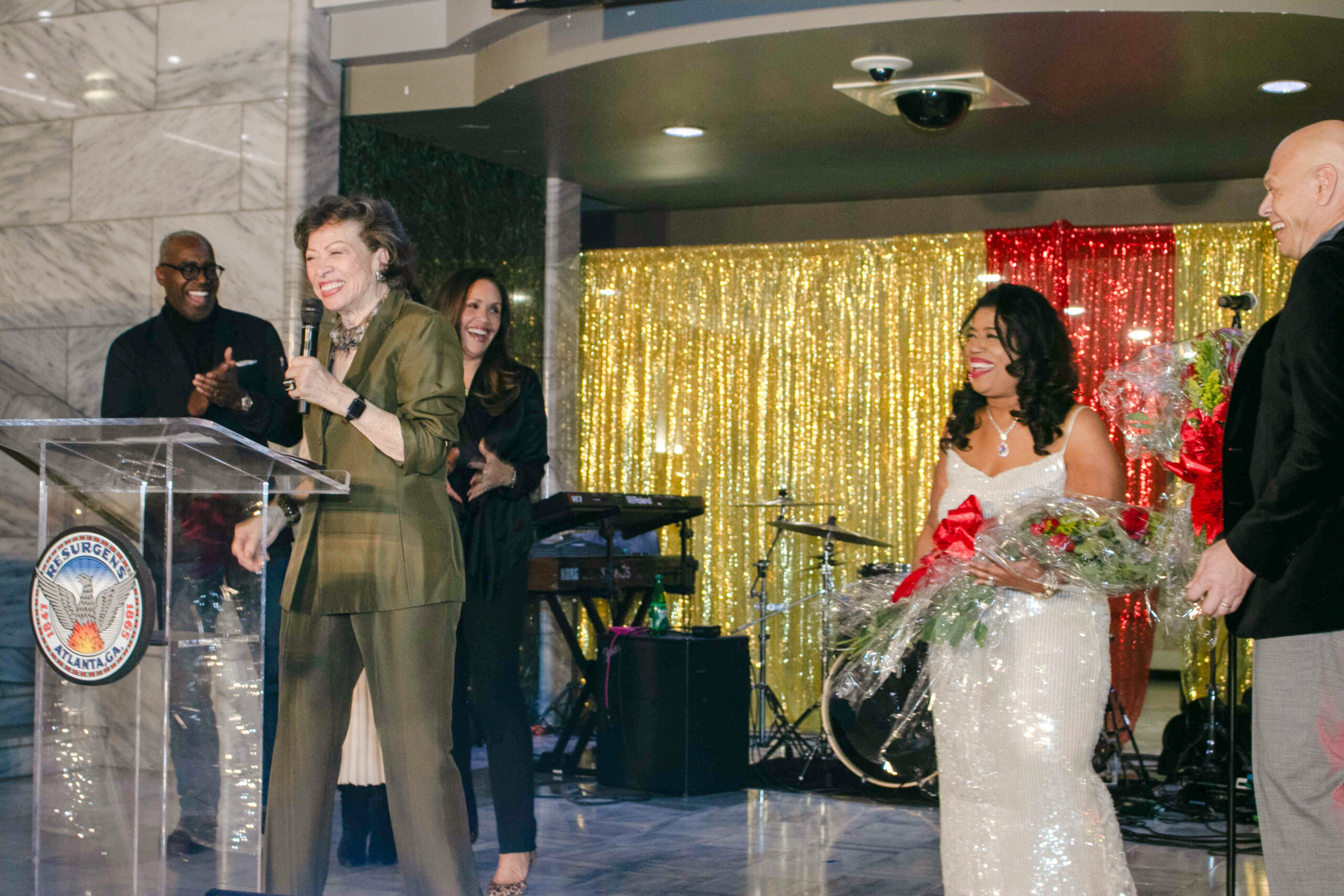 Perhaps the most historic announcement of the evening was the launch of the Maynard H. Jackson, Jr. Legacy of Opportunity Fund. This bold initiative is designed to support emerging businesses in the spirit of the late Maynard Jackson, Atlanta’s first Black mayor and the nation’s inclusion pioneer. The Fund debuted with a $10,000 annual commitment from an anonymous donor and was further strengthened by an additional $20,000 pledged by members of the Jackson family during the event. Representing the family were Valerie Richardson Jackson, Mayor Jackson’s widow, and Brooke Jackson Edmond, his daughter, along with her husband, Rod Edmond, and the couple’s daughter. The family expressed heartfelt gratitude to the Chapter for honoring the enduring legacy of Mayor Jackson.