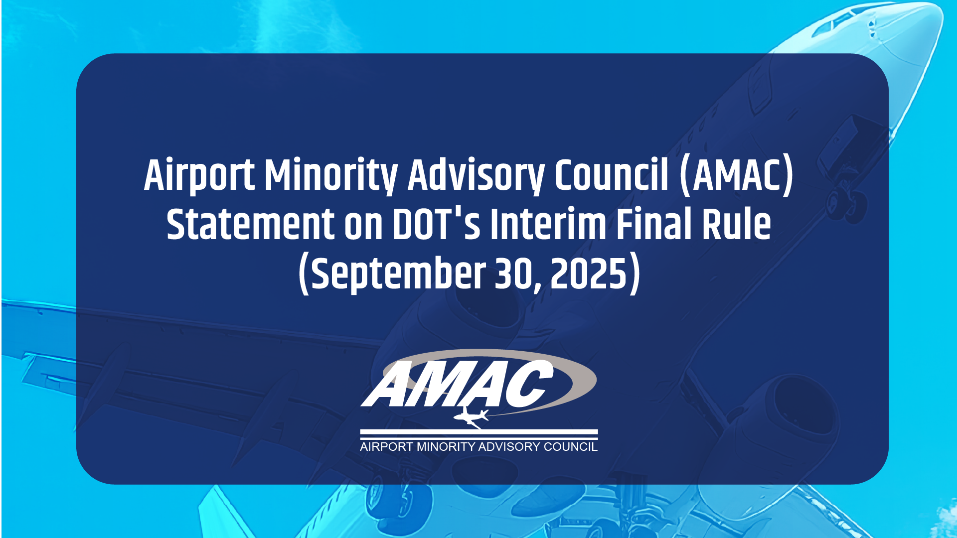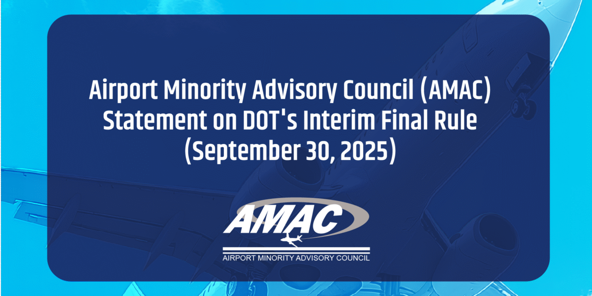 Statement from Eboni Wimbush, President & CEO of the Airport Minority Advisory Council (AMAC), on DOT’s Interim Final Rule (September 30, 2025)  “The U.S. Department of Transportation’s (DOT) Interim Final Rule (IFR) marks the most significant change to the DBE and ACDBE programs in more than four decades. These programs have long served as a gateway for minority- and women-owned businesses to access airport opportunities. The removal of the rebuttable presumption of social disadvantage based on race and gender fundamentally … Read More