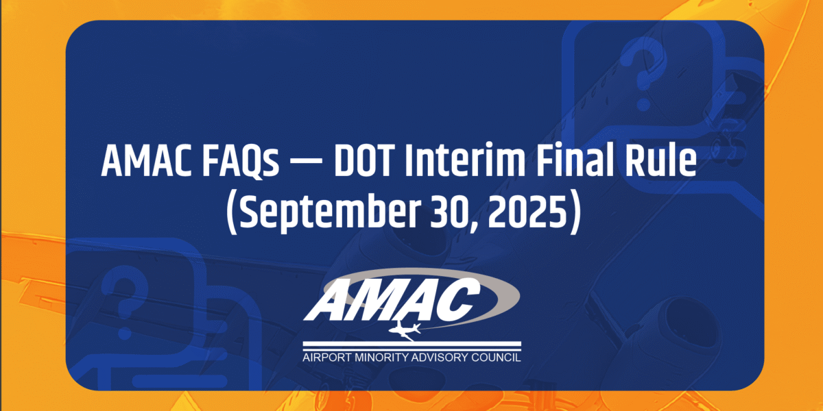 Airport Minority Advisory Council (AMAC) Members Frequently Asked Questions (FAQs) Navigating the DOT Interim Final Rule   Introduction On September 30, 2025, the U.S. Department of Transportation (DOT) issued an Interim Final Rule (IFR) that fundamentally changes the operation of the Disadvantaged Business Enterprise (DBE) and Airport Concessions Disadvantaged Business Enterprise (ACDBE) programs. This IFR was published in the Federal Register and became effective October 3, 2025.   For more than four decades, the DBE and subsequently, the ACDBE programs … Read More