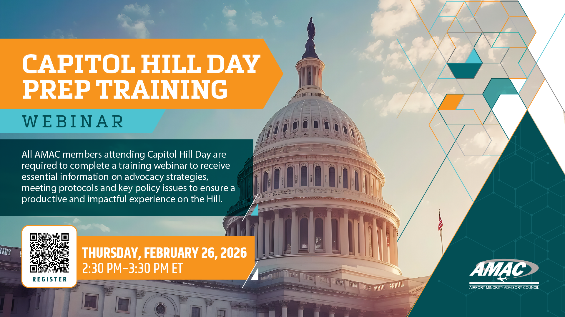 All AMAC members attending Capitol Hill Day are required to complete a training webinar to receive essential information on advocacy strategies, meeting protocols and key policy issues to ensure a productive and impactful experience on the Hill.