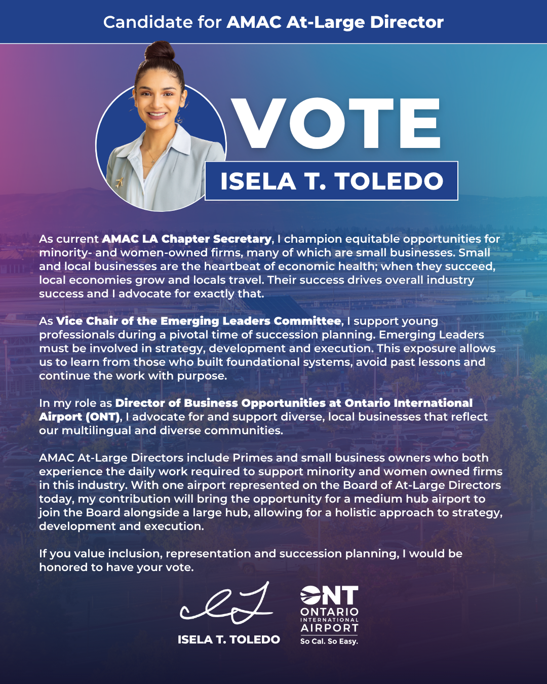 If elected, I’ll work to bring a grounded, operator’s perspective to the Board. I would be honored to contribute in a way that helps ensure policies and partnerships reflect the realities of running and scaling businesses in today’s airport environment, while supporting AMAC’s mission and the continued success of its members.